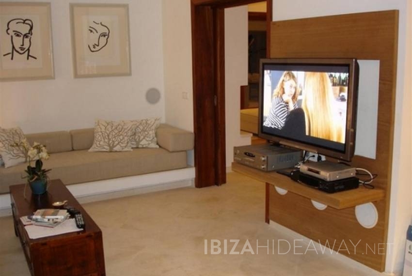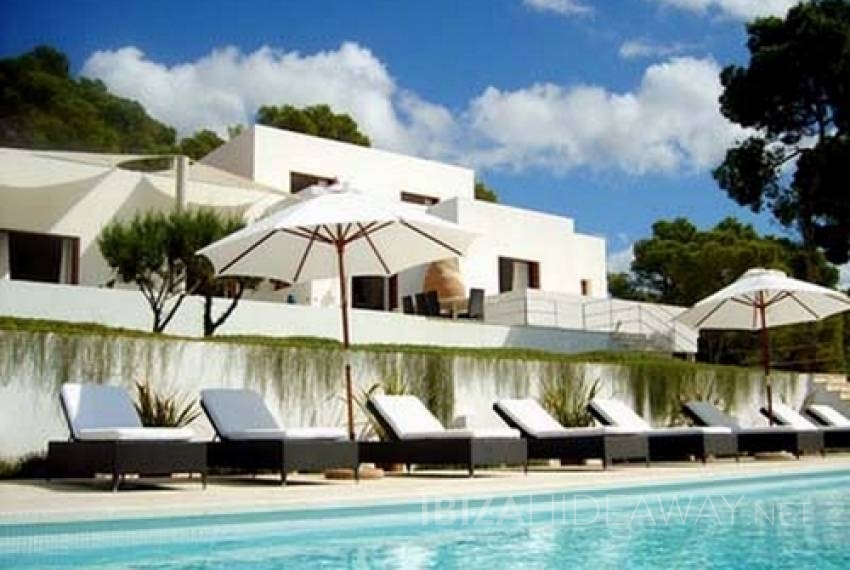 Upscale and dressed in white. The Villa is the latest in Ibizan minimal chic. This elegant and inviting seven bedroom paradise is found sitting on four hectar of land halfway down to Cala Vadella with uninterrupted views of the distant shoreline. Plain perfectionism: On 550 m2 living space you will never feel the weight of your travelling group.