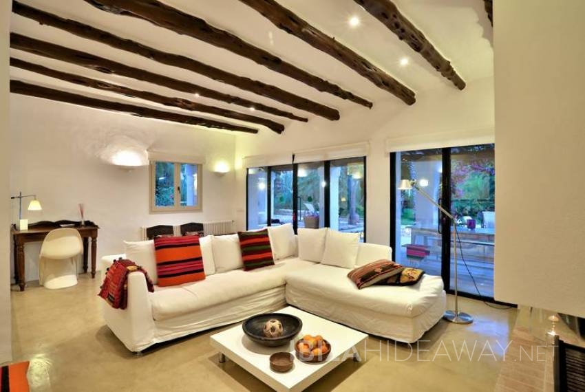 This high end villa of beautiful design is suitable for up to twelve people and located at just one km out of San José town. The villa is an original finca type villa, which has been remodeled into a comfortable luxury retreat set amidst mature mediterranean gardens full of palm trees and with spacious lawn areas.