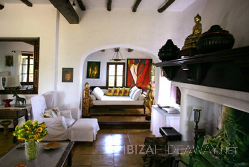 This spacious country mansion is found in top hill location just 4 km outside Ibiza towards San Rafael and within walking distance to the village. It offers beautiful panoramic views to the sea and to Ibiza old town, which is just a short drive away. From the villa you have easy access to Playa d'en Bossa, Talamance and Las Salinas beaches, yet it is set in a tranquil environment on 13.000 m2 ground.