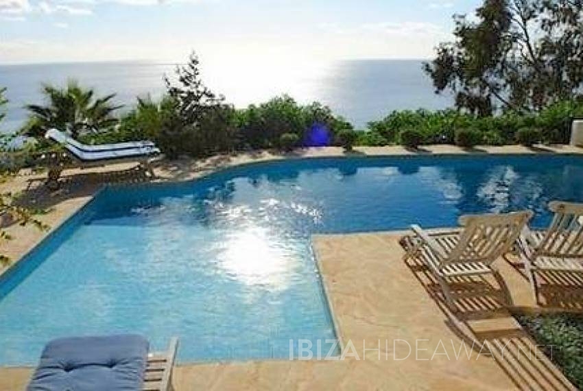 This villa is the typical high profile coastal cottage with its pastel colours, the antique furniture and the comfortable beds and sofas. From Villa Pere you can not only enjoy some of the best views on the island, this is also a very private property, fully gated, which can not be overlooked. The L-shaped pool is 11 m long and 4 m wide, there is a spacious lawn area next to the pool terrace for your children to play and run around. Inside the house you will find two spacious master suites with king and queen size double beds and two twin bedrooms. There is a fifth bedroom, suitable for children with three single beds, so the villa could sleep up to 11 guests, if need be. The extralarge kitchen boasts of a solid wooden breakfast table with views to garden and sea for sumptous breakfast indulgence. There is additional dining space both inside the house and in the garden.